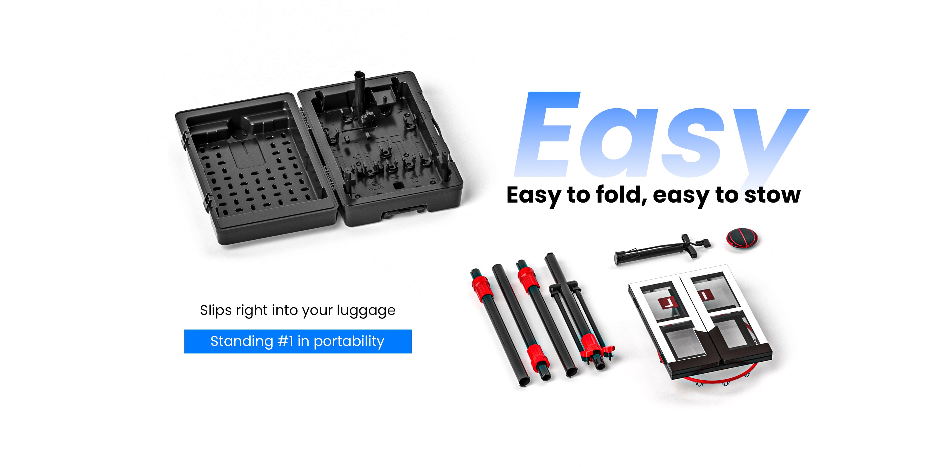 World’s first "luggage-style foldable hoop" fills the gap for "portable+quick-setup+versatile" solutions.